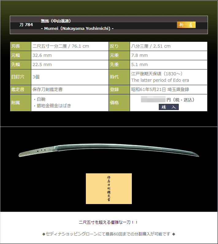 無銘(陀羅尼勝國) ~市場初登場の一刀です!!~