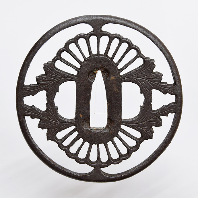 附属の拵は保存状態が頗る良く、大きな鐺と蜘蛛の巣を題材にした金具が眼を惹くと共に印象深く、切羽一枚に至るまですり替えられること無く、本刀と共に伝来してきた逸品です。