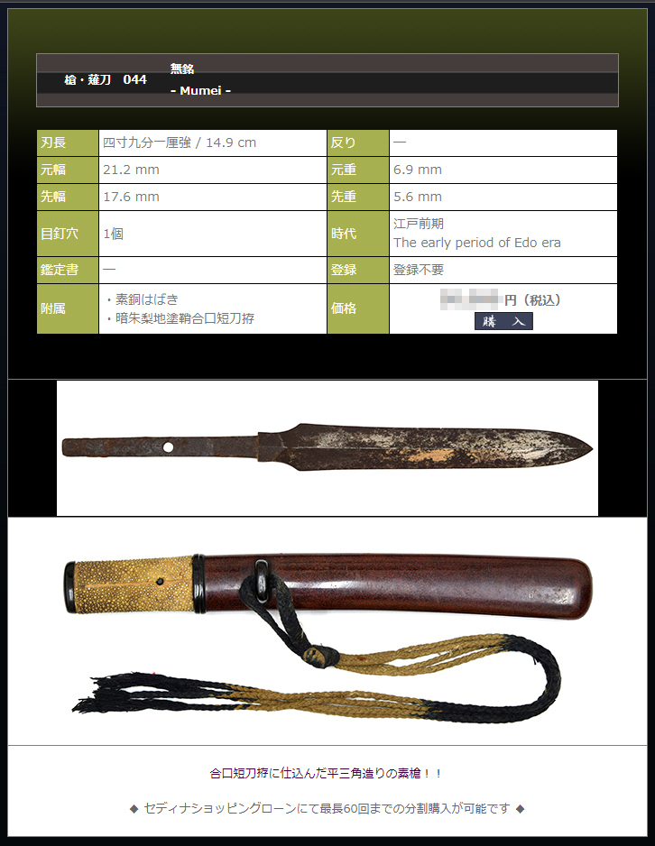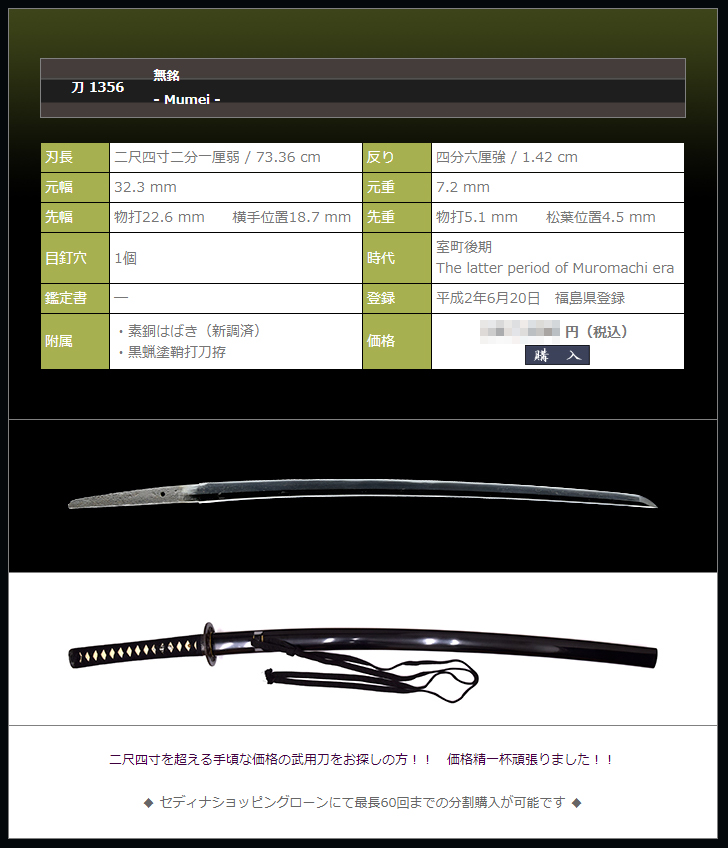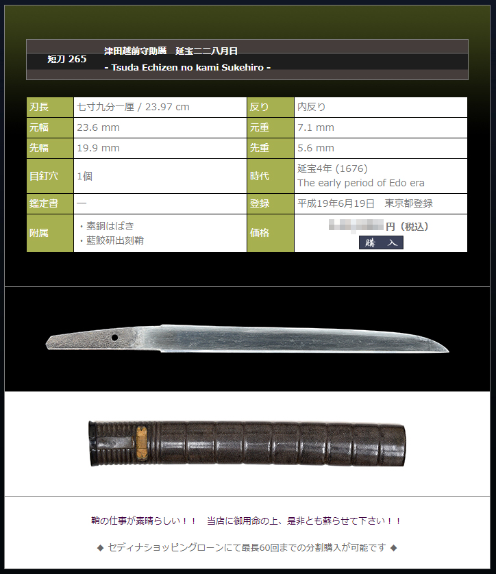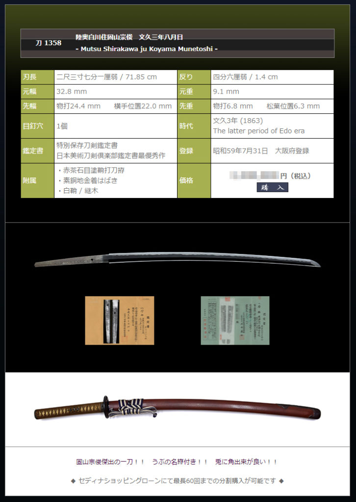 銘鑑によると奥州白川に同名で二代おり、本作はその年紀より二代宗俊の作と鑑せられます。