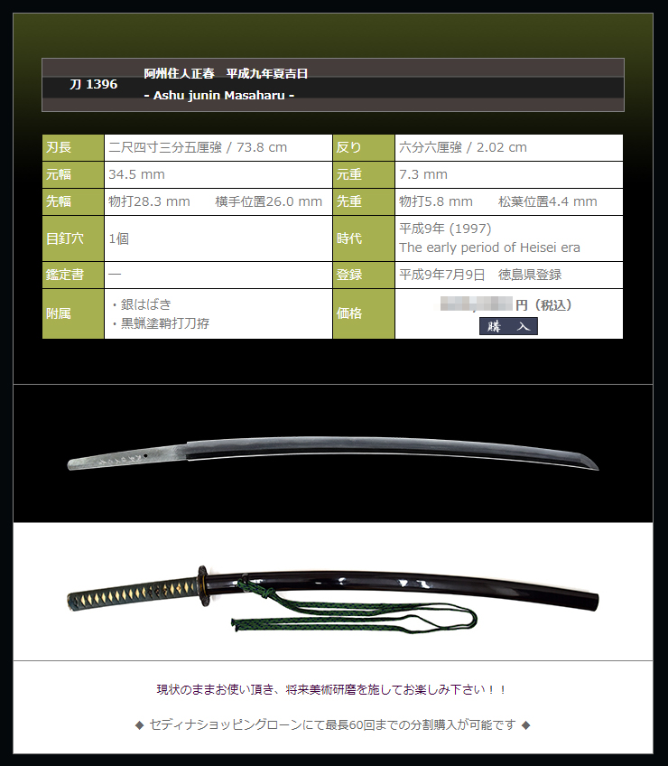 附属の拵は構図が良い現代金具が用いられており、柄にガタツキはありません。