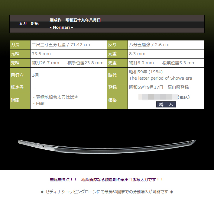 作風から鑑て山城の粟田口派を模した写し太刀で、研磨も当代屈指の名研師によって入念な研磨が施されています。