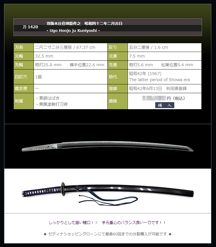 本名、鈴木國慶。元陸軍受名刀匠であり、聖代刀匠位列表では「上工の上位 良大業物 大関格」に列せられた刀匠で、秋田県本庄市にて鍛刀していました。