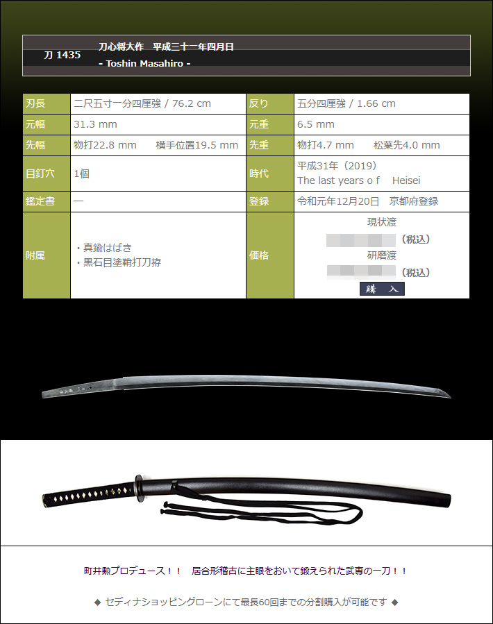 町井勲プロデュースの武用刀のご紹介です。