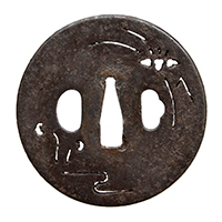 附属の拵は柄にガタツキ無くしっかりとしており、縁頭と目貫は菊花図で揃えられ、柄巻きは細い皮を四本で組み上げている。切羽は銀無垢の地金にて本刀に合わせて作られた真面目な物であり、鞘に施された丸に笹竜胆紋の高蒔絵がアクセントを加え、大振りの鉄地雲龍図鐺が更なるインパクトを与えます。白鞘と継木が付属しているのも高評価。